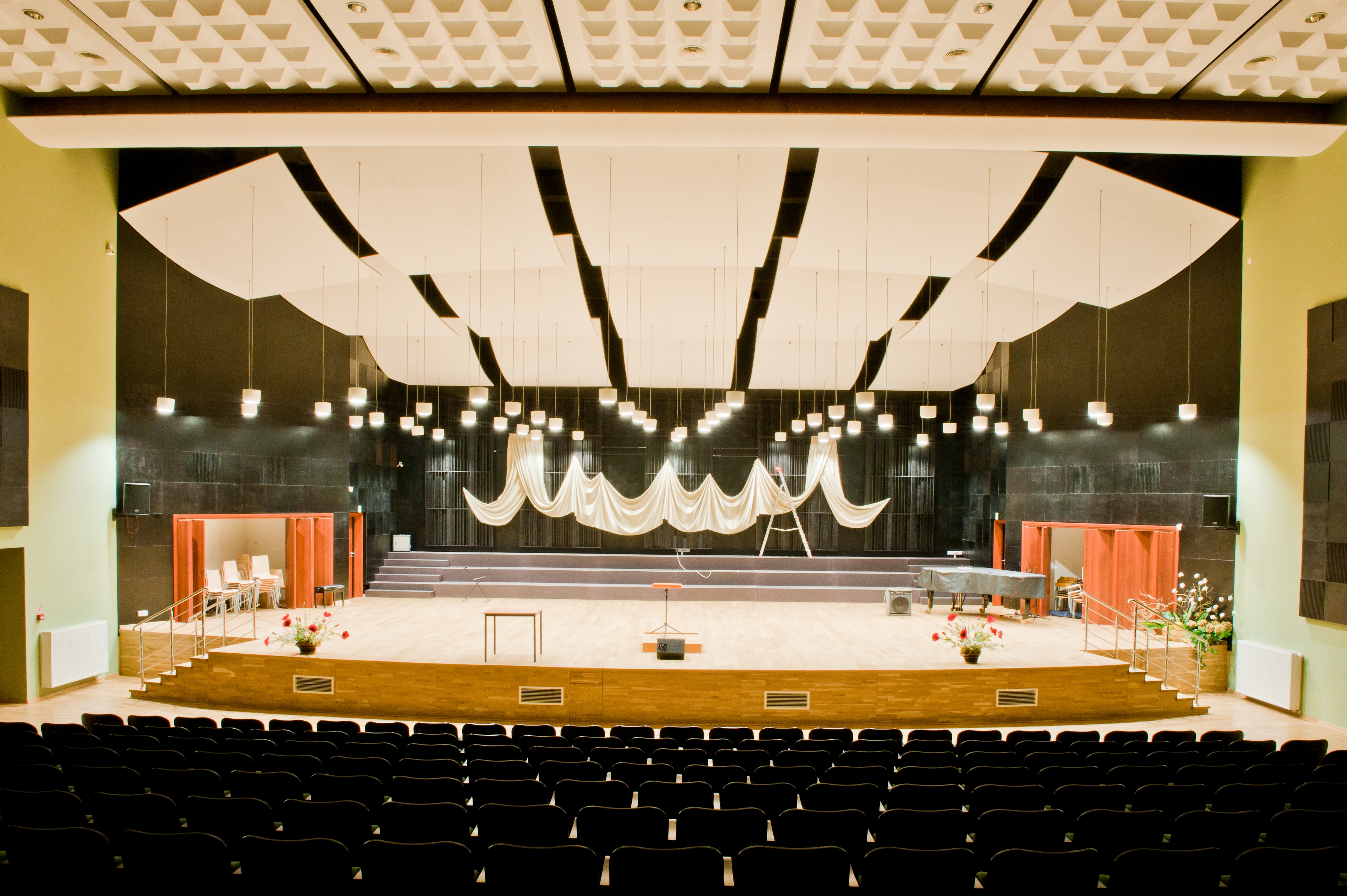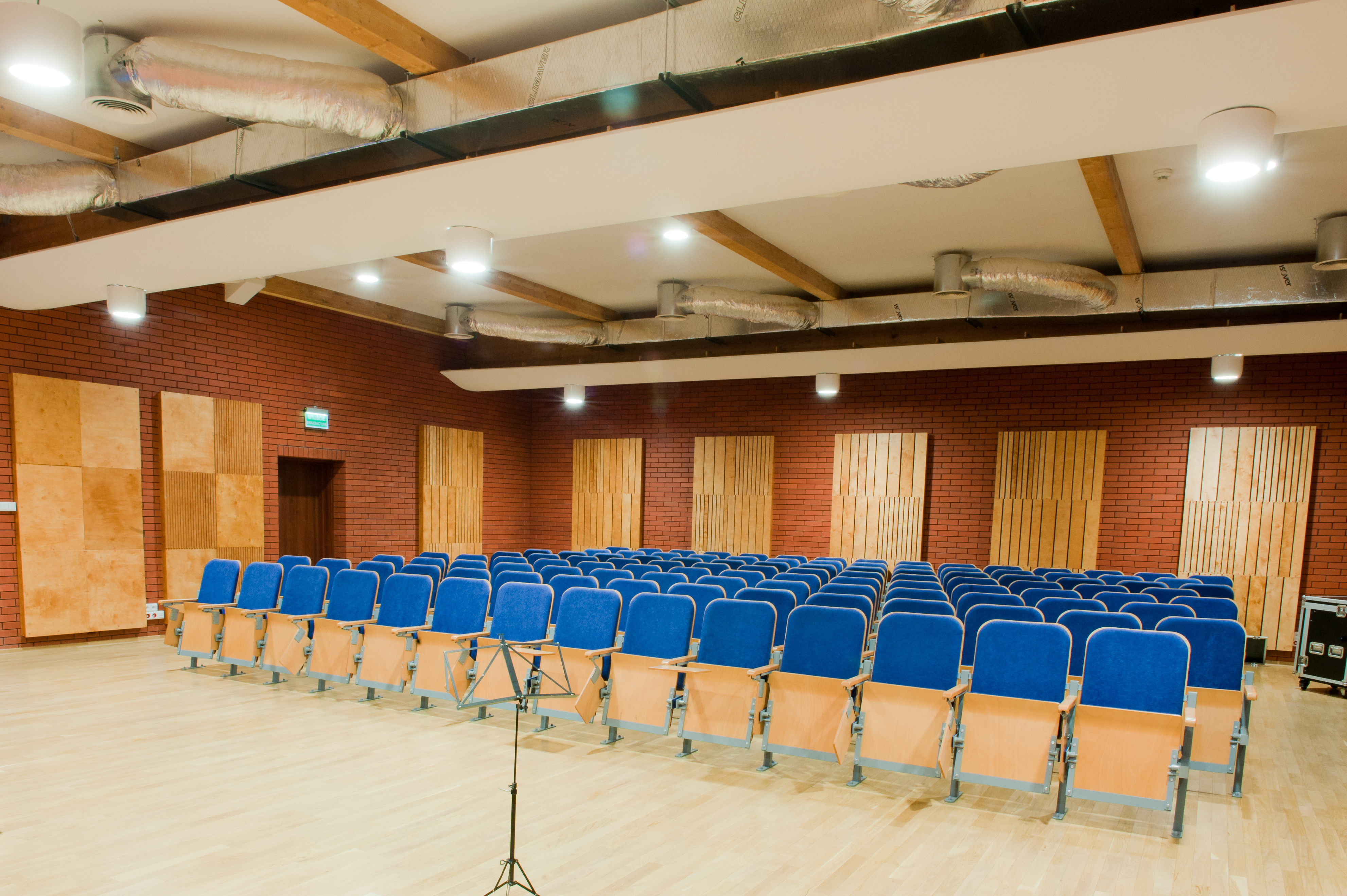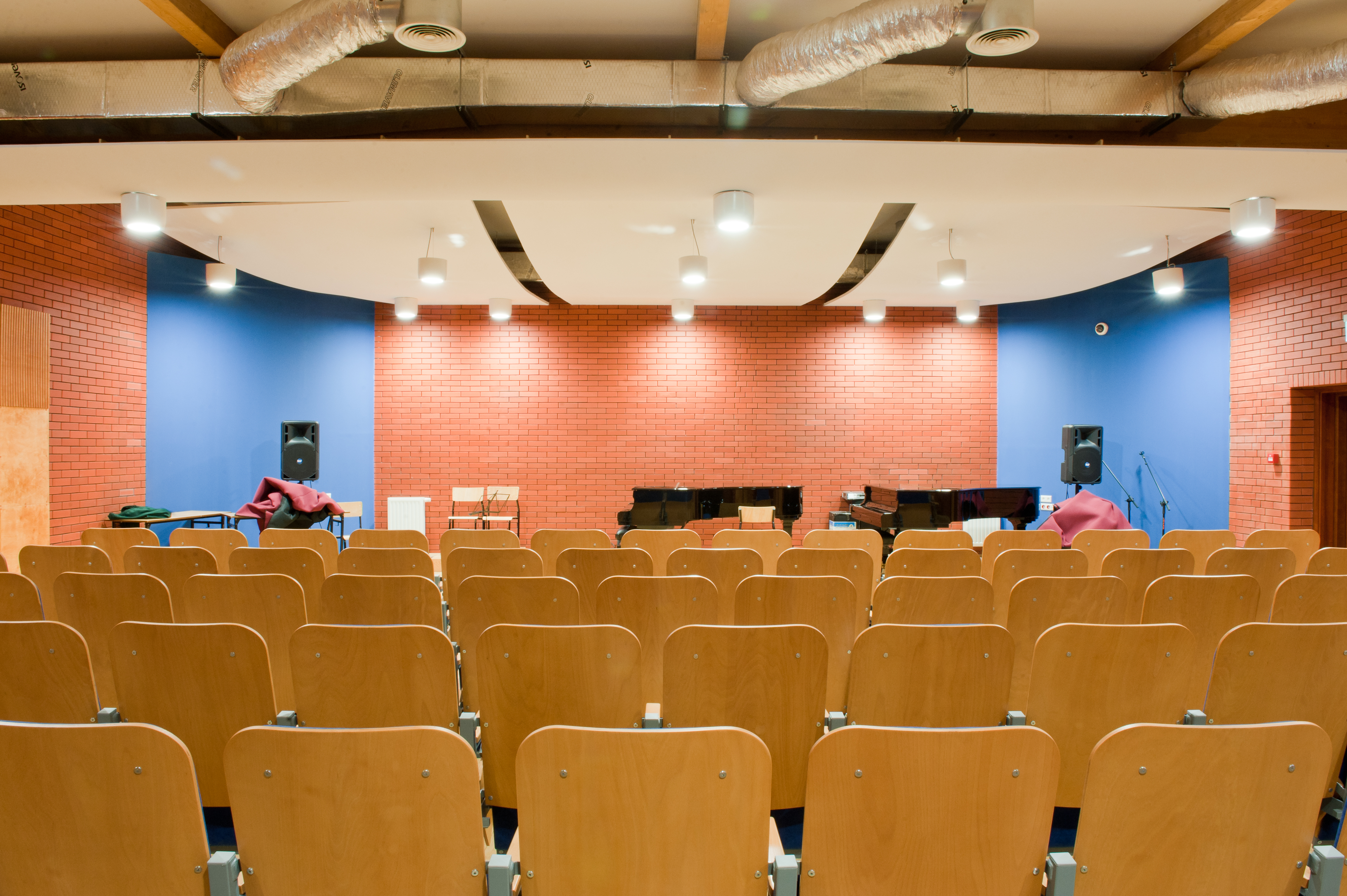 Sala koncertowa posiada widownię dla 294 osób oraz chór na 150 osób. W sali audytoryjnej widownia jest dla 101 osób oraz scena na 20 osób.